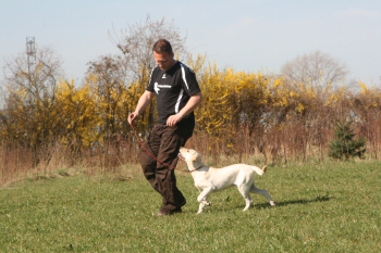 Nachfolgend einige Impressionen, die auch zeigen wie gut die Gespanne bereits zusammen gewachsen sind, wie schön sie kleine Unterordnungsübungen, wie "bei-Fuß-gehen", Platz usw. beherrschen und das auch die ersten Schritte in der Dummyarbeit erfolgreich sind.