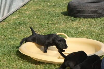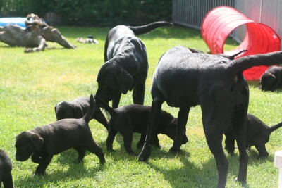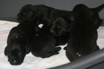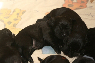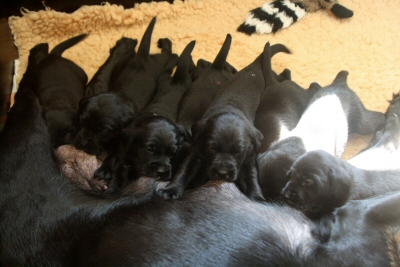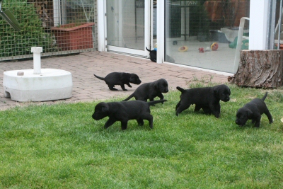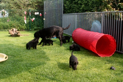 Mittlerweile sind die Welpen komplett auf ihre vier