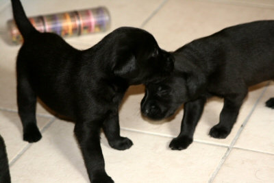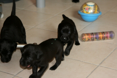 Nun erkunden die Welpen bereits das ganze Zimmer. Sie können