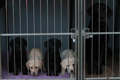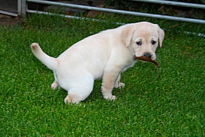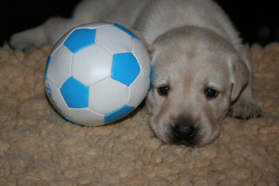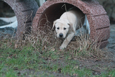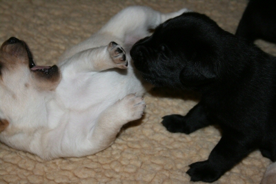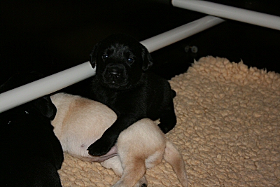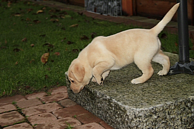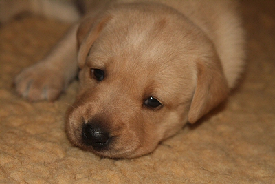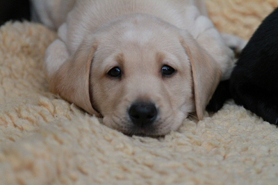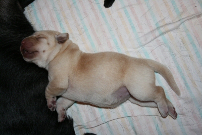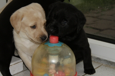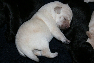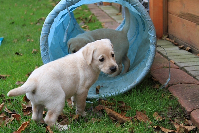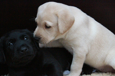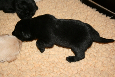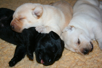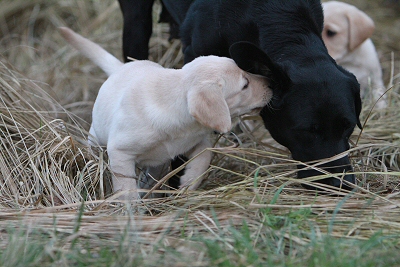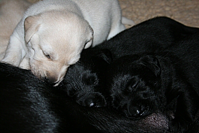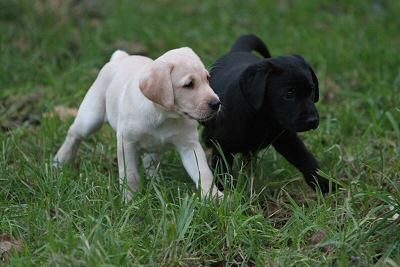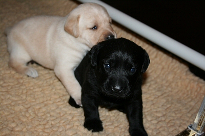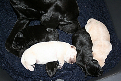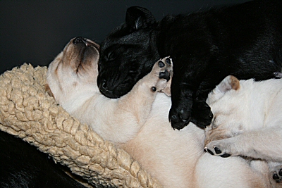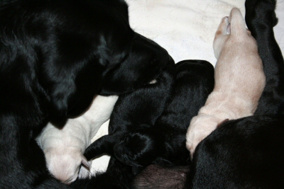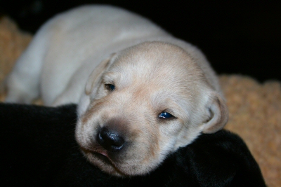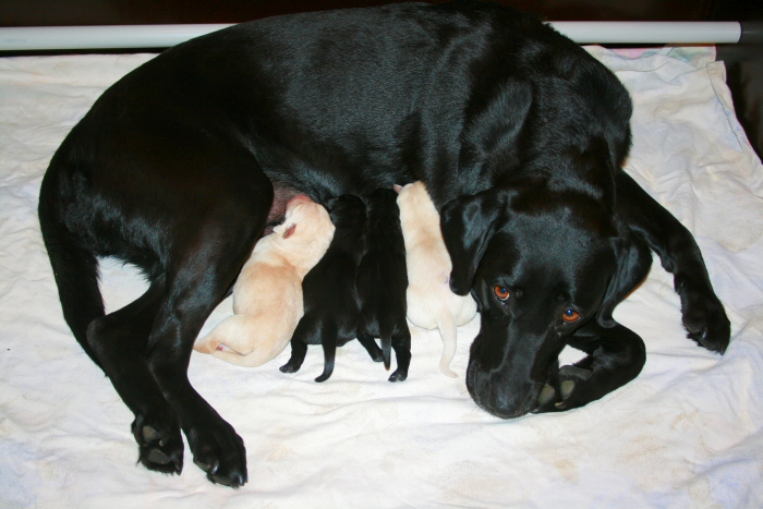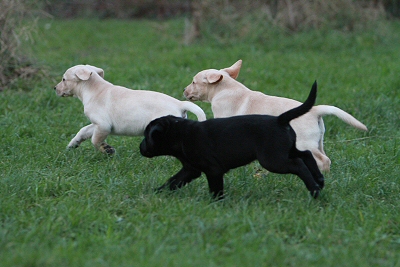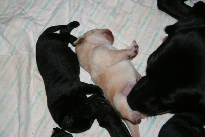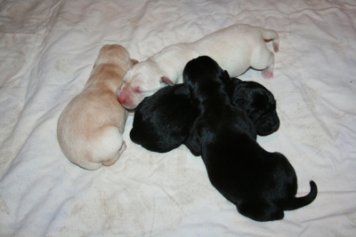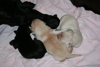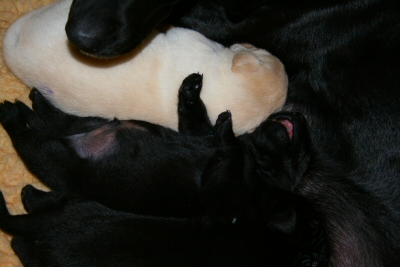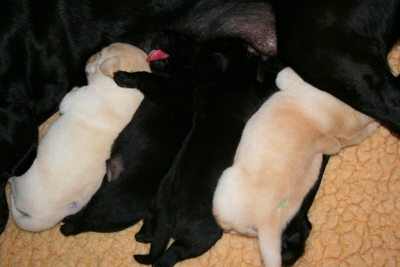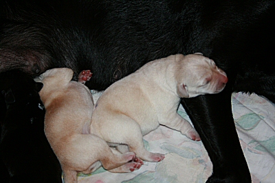 Die gelben Hündinnen entwickeln bereits ein sehr schönes Pigment.
