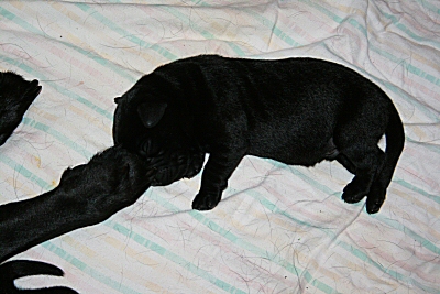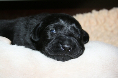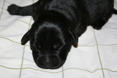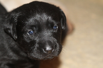 In den letzten Tagen haben die Augen der Welpen begonnen sich zu öffnen und die ersten wackeligen Schritte klappen auch schon. Die 1-kg-Marke haben alle schon locker überschritten.