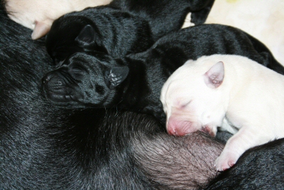 Die Welpen haben schon in den ersten 24 Stunden zugenommen.