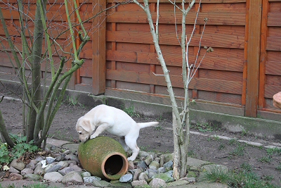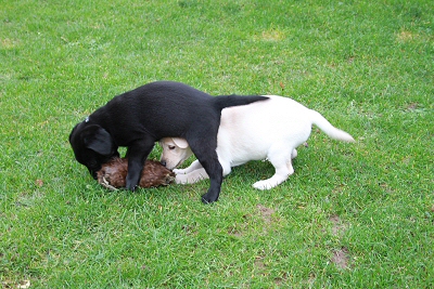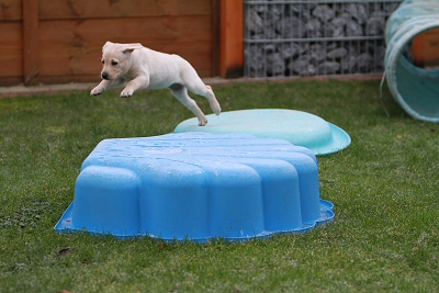 Aus den Welpen sind schon richtige kleine Akrobaten geworden. Neugierig und aufgeschlossen untersuchen sie alles Neue.