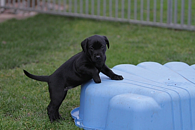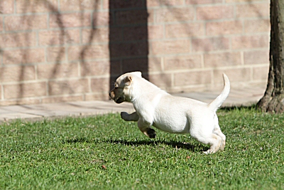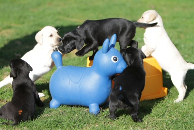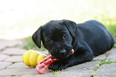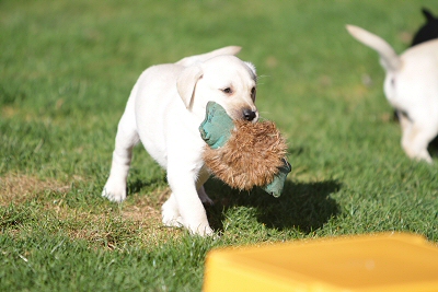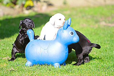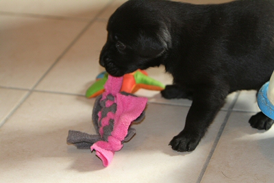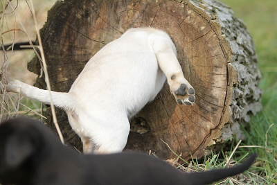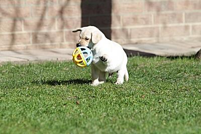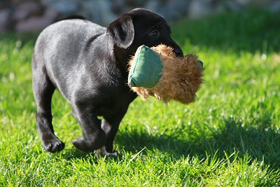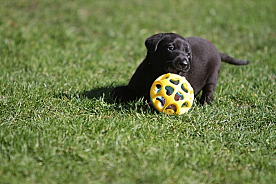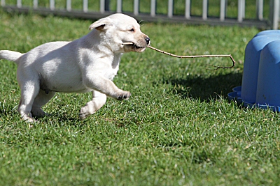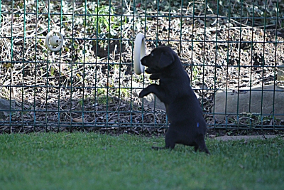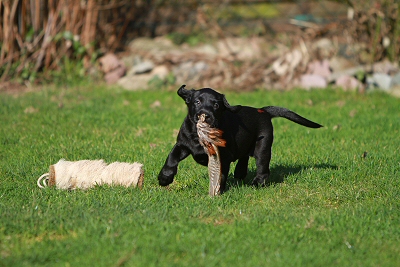 Sie toben nun auch unter Aufsicht durch den ganzen Garten und apportieren was nicht niet- und nagelfest ist.
