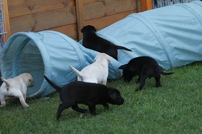 Die Welpen sind nun tagsüber im Wintergarten mit direktem Zugang zum Garten.