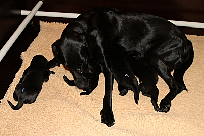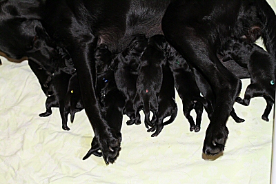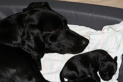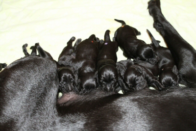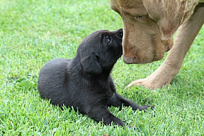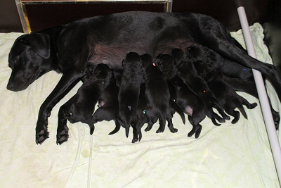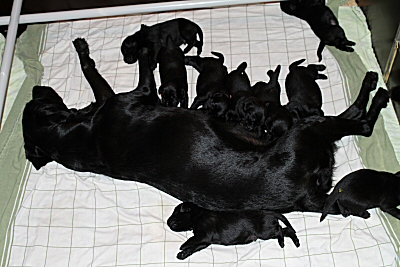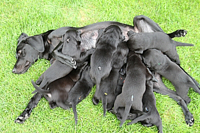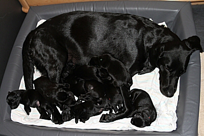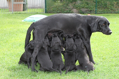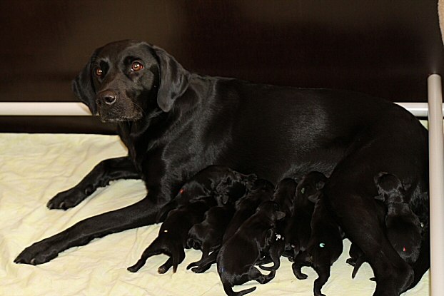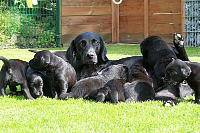 Sie ist sehr fürsorglich zu den 3 Hündinnen und 7 Rüden.