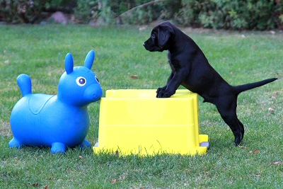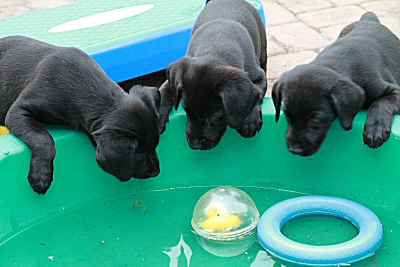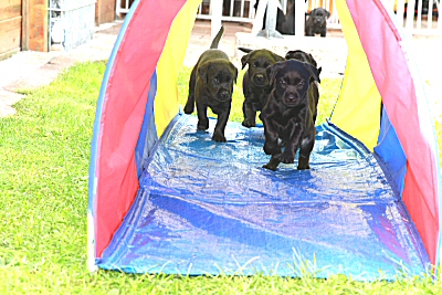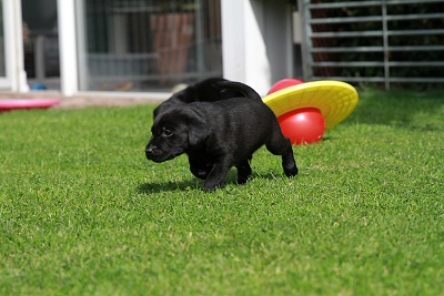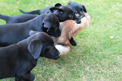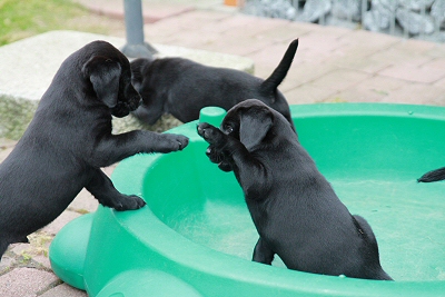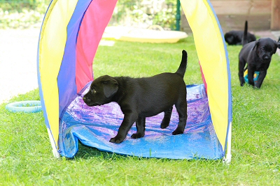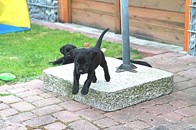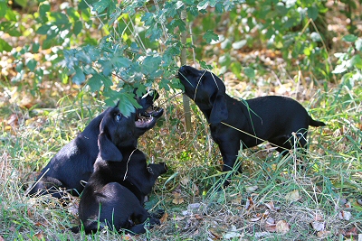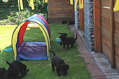 Die Welpen lieben den Auslauf und die vielen neuen Reize. Sie erkunden alles