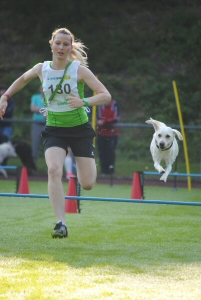 Durch den Parcours mit den optischen und akustischen Reizen läuft die Hündin