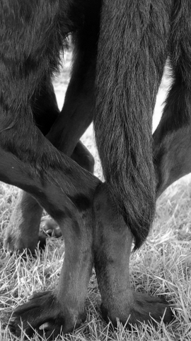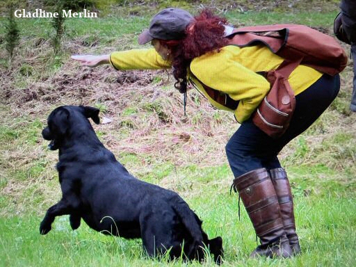 Gladline Merlin besteht die Zuchtzulassungsprüfung mit dem Formwert vorzüglich. Freundlicher schwarzer Rüde, ansprechender Gebrauchstyp, korr. Haar, schöner Kopf, der gut getragen wird, Rücken noch fest genug, gut aufgerippt, korr. Winkelungen, Katzenpfoten, s.g. Bewegungen. Spitze, Regina.