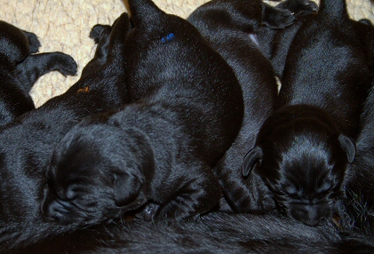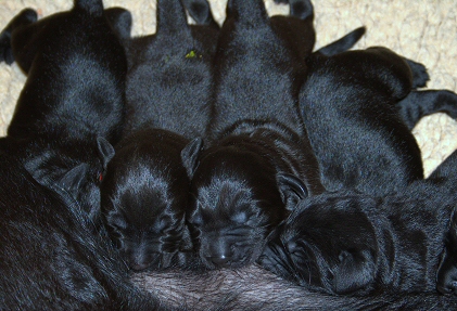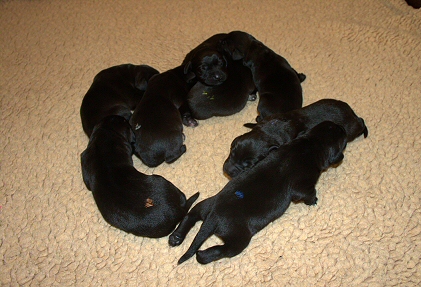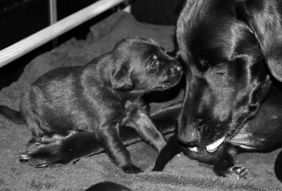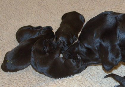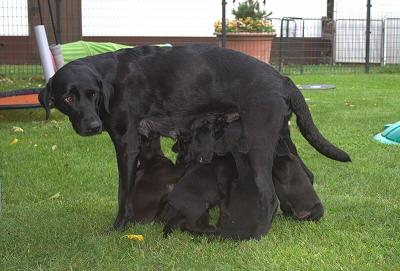 Jenna versorgt die 4 Hündinnen und 4 Rüden vorbildlich.