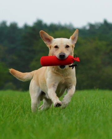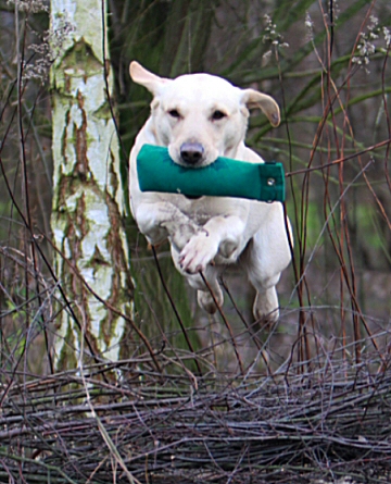 darüber freue ich mich sehr. Seine Besitzerin schreibt über ihn: Simba, (m)ein Traumhund, ist das Synonym für »geballte Arbeitsfreude«!Birgit und Frank haben uns „Icebreaker“ (genannt „Simba“) anvertraut, der sich problemlos in unser damaliges kleines Retriever - Rudel eingefügt hat. Simba ist ein überaus arbeitsfreudiger Rüde, dem man keine größere Freude bereiten kann, als ihn „arbeiten“ zu lassen. Im Haus, im Büro und auf Reisen verhält er sich absolut ruhig, auch im Alltag ist er sicher und sehr kinderlieb. Draußen aber, wenn es zum Training geht, verwandelt sich der „Haus- und Familienhund“ in einen „Leistungshund“; er blüht förmlich auf und die Augen „strahlen“. Simba beobachtet ruhig und konzentriert, wenn ein Dummy oder Wild fällt, startet aber auch kraftvoll, wenn er auf ein „blind“ geschickt wird. Schon als ganz junger Hund fiel nicht nur uns seine hervorragende Nasenarbeit in der Suche auf. Wir bedanken uns dafür, dass Birgit und Frank uns „an die Hand genommen“, uns den Weg in die Jagd- und Dummyarbeit gezeigt, uns trainiert und Türen geöffnet haben. So konnten wir seine vielen wunderbaren Anlagen fördern und Simba gerecht werden. Wir freuen uns riesig auf die Verpaarung von Jenna und Simba und auf einen Welpen aus der Verbindung !